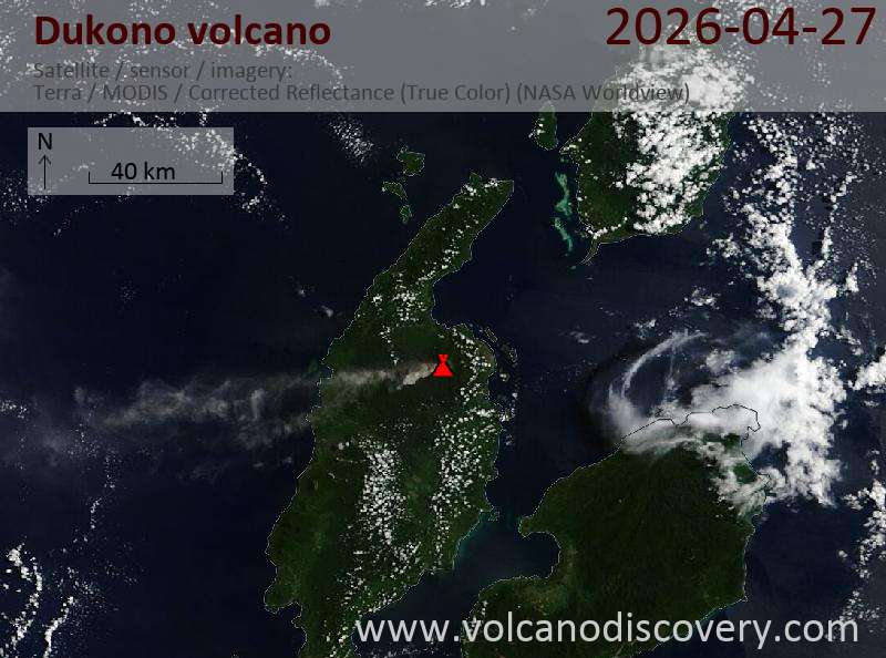 Explosive activity continues. Volcanic Ash Advisory Center (VAAC) Darwin warned about a volcanic ash plume that rose up to estimated 7000 ft (2100 m) altitude or flight level 070 and is moving at 15 kts in SW direction.