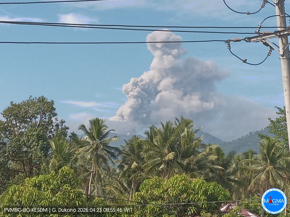 The explosion from Dukono volcano yesterday (image: PVMBG)