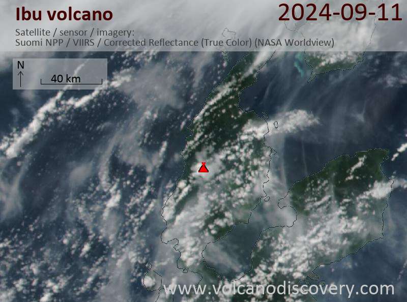 Veröffentlicht am 2024-09-11 von global-affairIbu Volcano Volcanic Ash Advisory: GROUND REPORT OF VA TO FL090 AT 11/1423Z EST VA DTG: 11/1830Z Satellite image of Ibu volcano on 11 Sep 2024