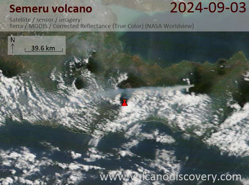 Veröffentlicht am 2024-09-03 von global-affairSemeru Volcano Volcanic Ash Advisory: VA EMISSION REPORTED FM GND AT 03/1429Z EST VA DTG: 03/1550Z Satellite image of Semeru volcano on 3 Sep 2024