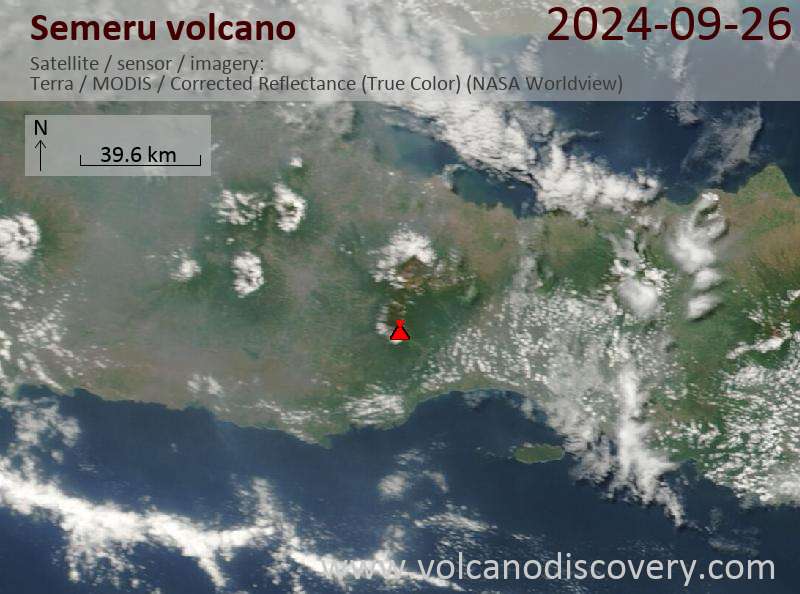 Veröffentlicht am 2024-09-26 von global-affairSemeru Volcano Volcanic Ash Advisory: VA TO FL140 LAST REPORTED AT 25/0431Z EST VA DTG: 26/0520Z to 14000 ft (4300 m) Satellite image of Semeru volcano on 26 Sep 2024