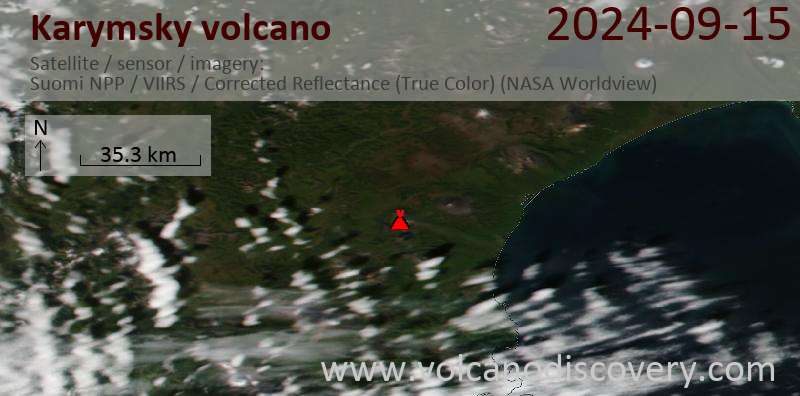 Satellite image of Karymsky volcano on 16 Sep 2024