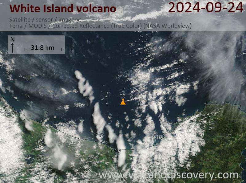 Satellite image of White Island volcano on 24 Sep 2024