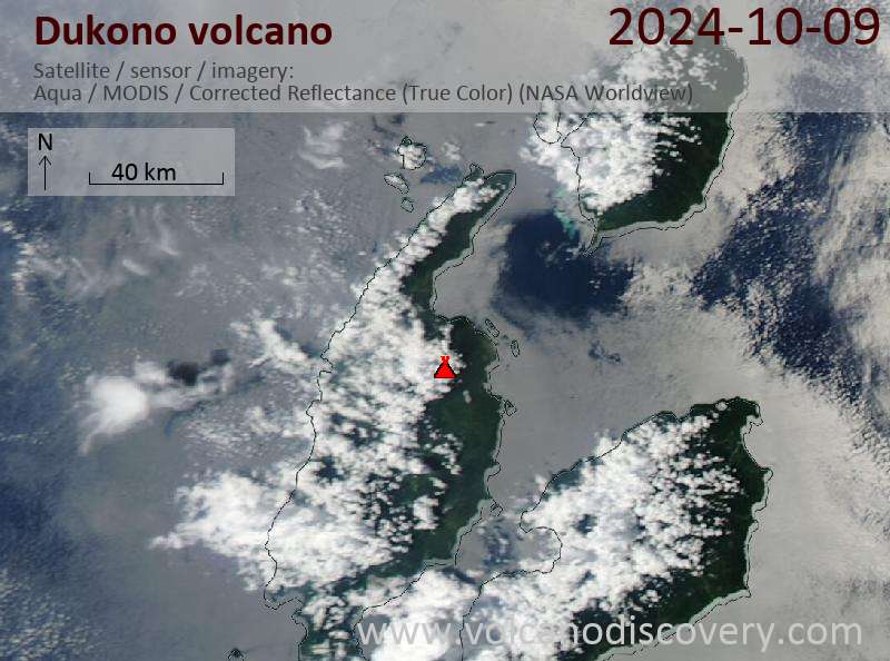 Veröffentlicht am 2024-10-10 von global-affairDukono Volcano Volcanic Ash Advisory: VA PLUME TO FL080 OBS AT 10/0030Z EXTD W OBS VA DTG: 10/0030Z to 8000 ft (2400 m) Satellite image of Dukono volcano on 10 Oct 2024