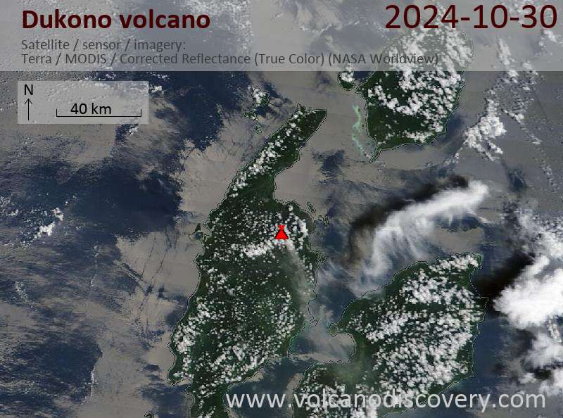 Satellite image of Dukono volcano on 30 Oct 2024
