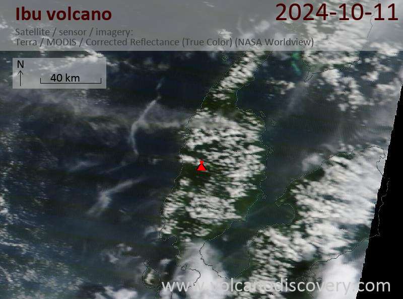 Veröffentlicht am 2024-10-11 von global-affairIbu Volcano Volcanic Ash Advisory: DISCRETE ERUPTION TO FL080 DISCERNIBLE AT 11/0230Z MOV W to 8000 ft (2400 m) Satellite image of Ibu volcano on 11 Oct 2024