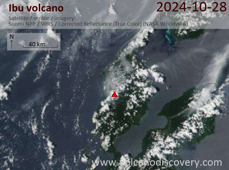Veröffentlicht am 2024-10-29 von global-affairIbu Volcano Volcanic Ash Advisory: VA TO FL070 REPORTED 29/0008Z MOV ENE EST VA DTG: 29/0020Z to 7000 ft (2100 m) Satellite image of Ibu volcano on 29 Oct 2024