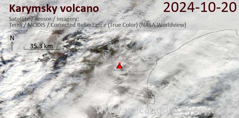 Satellite image of Karymsky volcano on 20 Oct 2024