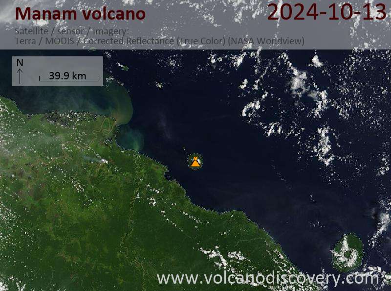 Satellite image of Manam volcano on 13 Oct 2024