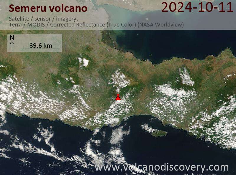Veröffentlicht am 2024-10-11 von global-affairSemeru Volcano Volcanic Ash Advisory: VA TO FL140 REPORTED FM GND AT 11/0025Z EST VA DTG: 11/1010Z to 14000 ft (4300 m) Satellite image of Semeru volcano on 11 Oct 2024
