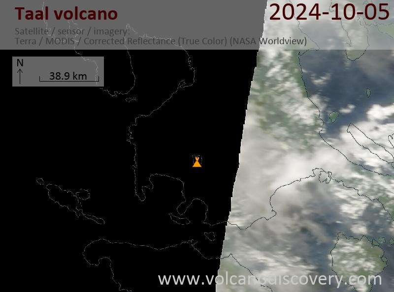 Veröffentlicht am 2024-10-05 von global-affairTaal Volcano Volcanic Ash Advisory: ERUPTION AT 20241005/0332Z FL080 EXTD SW REPORTED OBS VA DTG: 05/0340Z Satellite image of Taal volcano on 5 Oct 2024