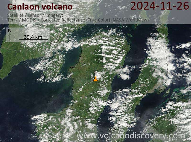 Veröffentlicht am 2024-11-26 von global-affairCanlaon Volcano Volcanic Ash Advisory: ERUPTION AT 20241126/0910Z FL110 EXTD SW REPORTED OBS VA DTG: 26/0910Z Satellite image of Canlaon volcano on 26 Nov 2024
