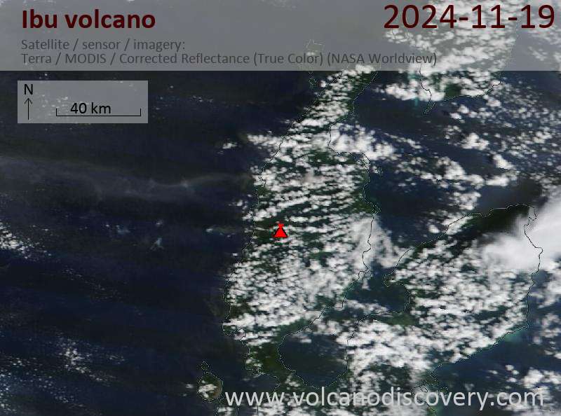 Satellite image of Ibu volcano on 19 Nov 2024