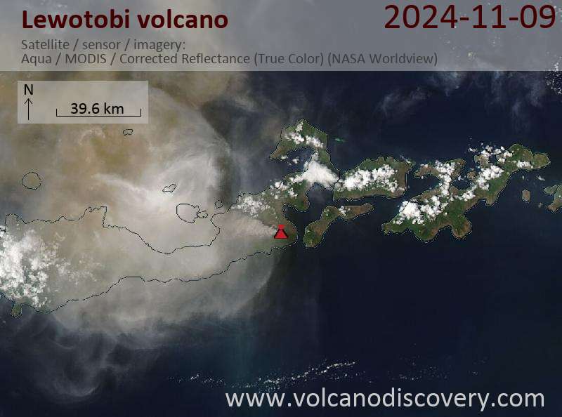 Satellite image of Lewotobi volcano on 10 Nov 2024