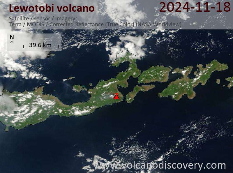 Veröffentlicht am 2024-11-18 von global-affairLewotobi Volcano Volcanic Ash Advisory: VA TO FL100 REPORTED 18/0901Z MOV W EST VA DTG: 18/1130Z to 10000 ft (3000 m) Satellite image of Lewotobi volcano on 18 Nov 2024