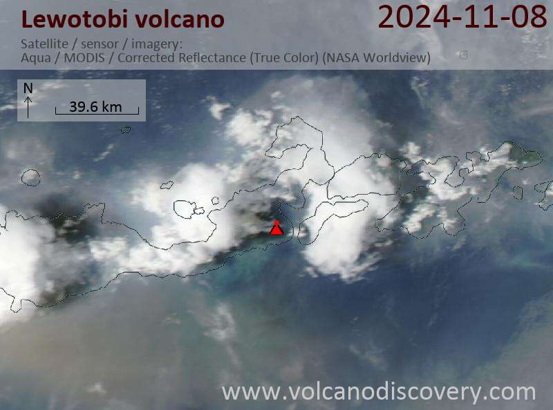 Satellite image of Lewotobi volcano on 9 Nov 2024