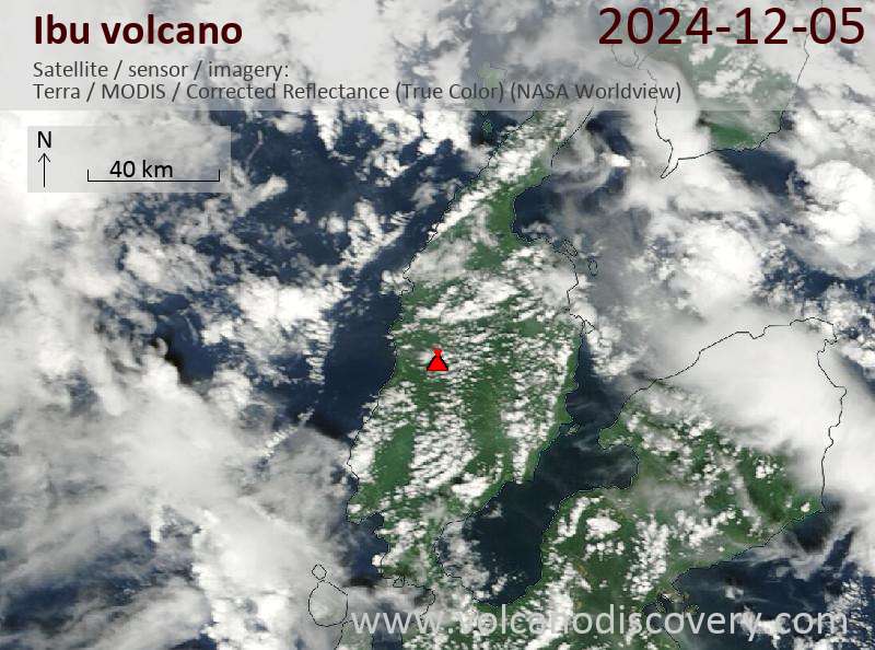 Veröffentlicht am 2024-12-05 von global-affairIbu Volcano Volcanic Ash Advisory: VA TO FL060 REPORTED 05/2022Z MOV SW EST VA DTG: 05/2030Z to 6000 ft (1800 m) Satellite image of Ibu volcano on 5 Dec 2024