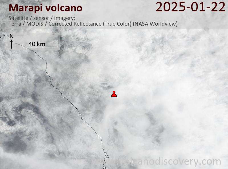 Veröffentlicht am 2025-01-22 von global-affairMarapi Volcano Volcanic Ash Advisory: VA REPORTED AT 22/1229Z EST VA DTG: 22/1240Z Satellite image of Marapi volcano on 22 Jan 2025