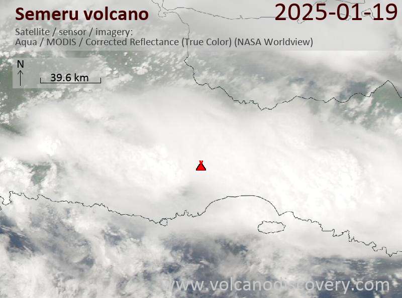 Veröffentlicht am 2025-01-19 von global-affairSemeru Volcano Volcanic Ash Advisory: VA TO FL150 REPORTED AT 19/1916Z EST VA DTG: 19/1940Z to 15000 ft (4600 m) Satellite image of Semeru volcano on 19 Jan 2025
