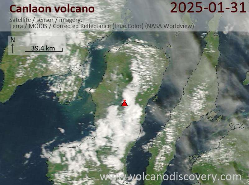 Veröffentlicht am 2025-02-01 von global-affairCanlaon Volcano Volcanic Ash Advisory: ERUPTION AT 20250201/0208Z FL090 EXTD W REPORTED OBS VA DTG: 01/0200Z Satellite image of Canlaon volcano on 1 Feb 2025