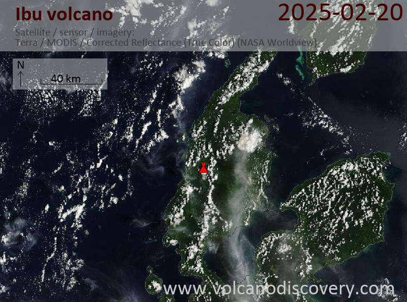 Veröffentlicht am 2025-02-20 von global-affairIbu Volcano Volcanic Ash Advisory: INTERMITTENT DISCRETE VA EMISSIONS TO FL080 OBS AT 20/0000Z Satellite image of Ibu volcano on 20 Feb 2025