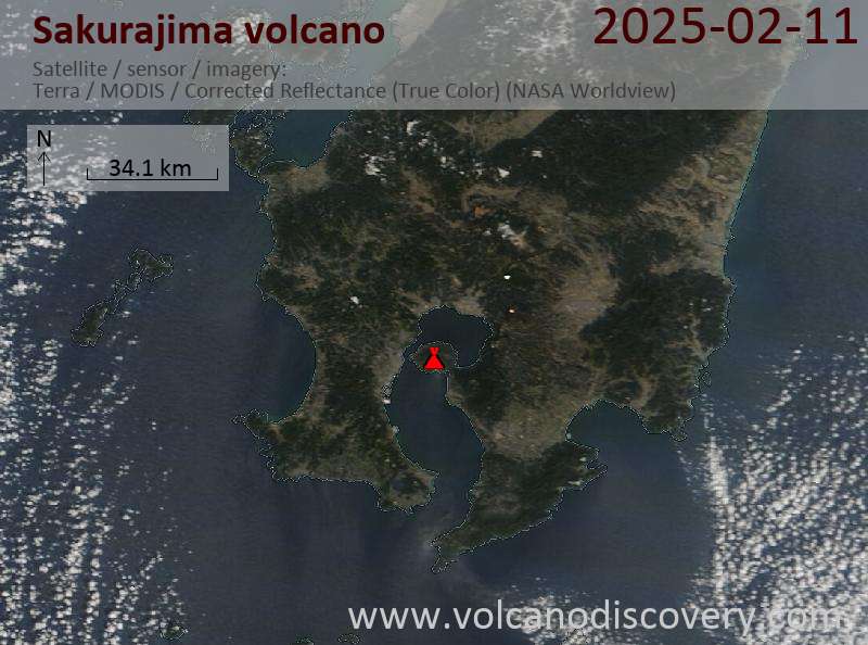 Satellite image of Sakurajima volcano on 11 Feb 2025