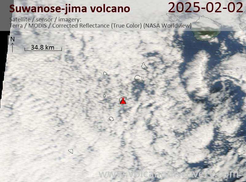 Satellite image of Suwanose-jima volcano on 2 Feb 2025