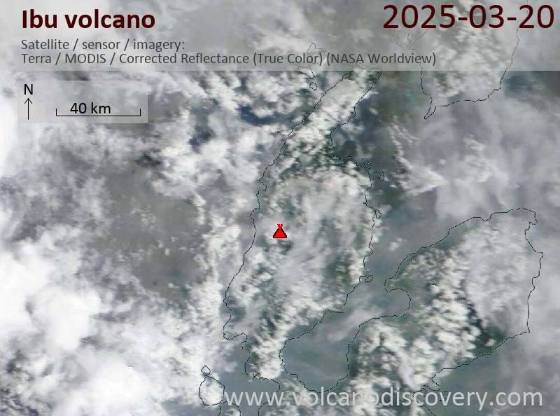 Satellite image of Ibu volcano on 20 Mar 2025