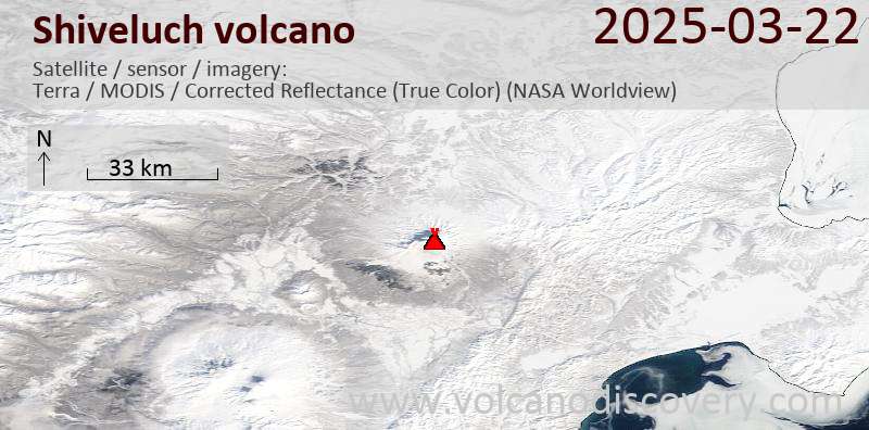 Veröffentlicht am 2025-03-22 von global-affairShiveluch Volcano Volcanic Ash Advisory: VA AT 20250322/0251Z FL140 EXTD E MOV 10KT REPORTED Satellite image of Shiveluch volcano on 22 Mar 2025