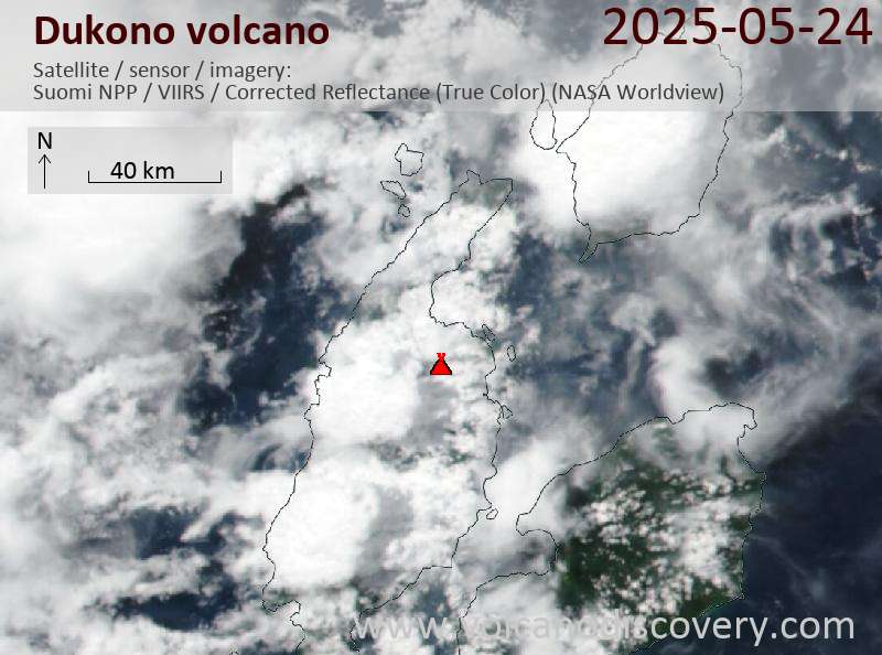 Satellite image of Dukono volcano on 24 May 2025