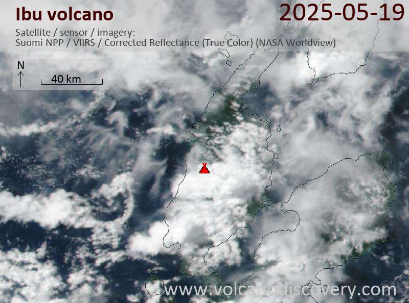 Veröffentlicht am 2025-05-19 von global-affairIbu Volcano Volcanic Ash Advisory: VA TO FL080 MOV SE, LAST REPORTED AT 19/0907Z to 8000 ft (2400 m) Satellite image of Ibu volcano on 19 May 2025