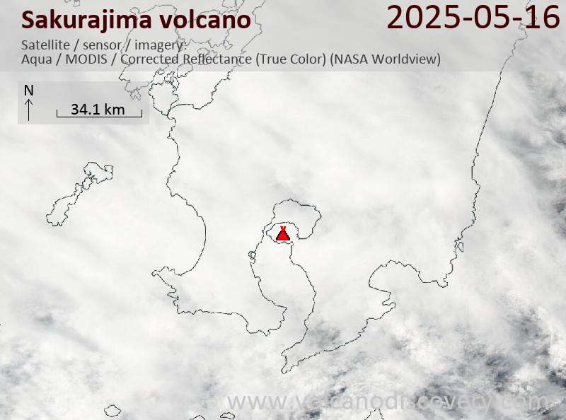 Veröffentlicht am 2025-05-17 von global-affairSakurajima Volcano Volcanic Ash Advisory: EXPLODED AT 20250517/0223Z VA CLD UNKNOWN OBS VA DTG: 17/0210Z Satellite image of Sakurajima volcano on 17 May 2025