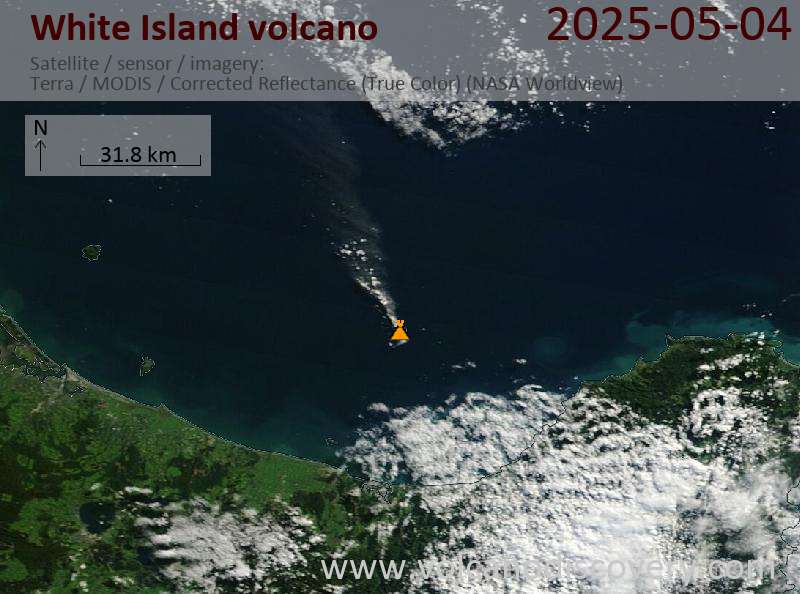 White Island Volcano Volcanic Ash Advisory: ERUPTION AT 20250503/0040Z CONTINUOUS LOW LEVEL ERUPTION to 3000 ft (900 m)