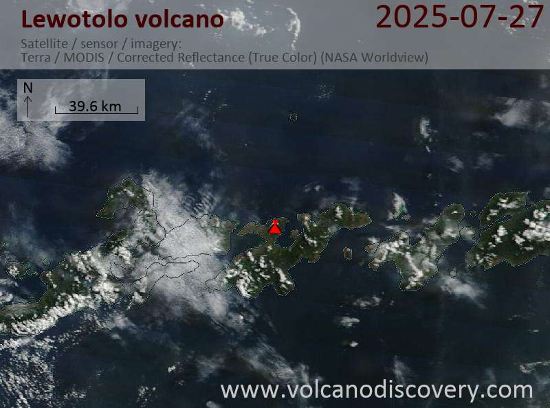 Veröffentlicht am 2025-07-27 von global-affairLewotolo Volcano Volcanic Ash Advisory: VA TO FL060 LAST REP AT 26/1025Z EST VA DTG: 27/1630Z to 6000 ft (1800 m) Satellite image of Lewotolo volcano on 27 Jul 2025