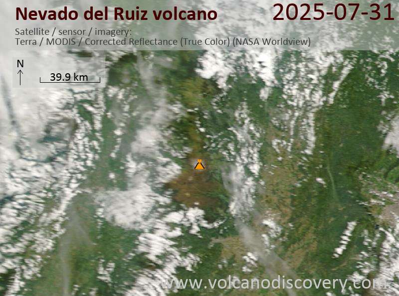 Satellite image of Nevado del Ruiz volcano on 31 Jul 2025