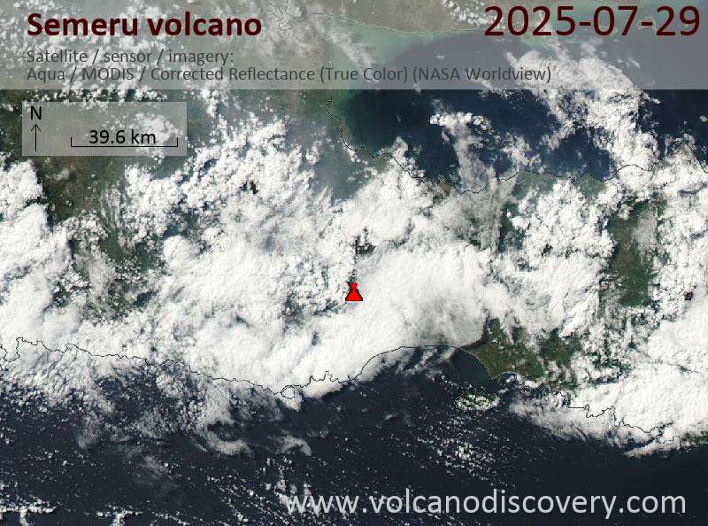 Veröffentlicht am 2025-07-29 von global-affairSemeru Volcano Volcanic Ash Advisory: VA TO FL150 OBS AT 29/1700Z OBS VA DTG: 29/1700Z to 15000 ft (4600 m) Satellite image of Semeru volcano on 29 Jul 2025