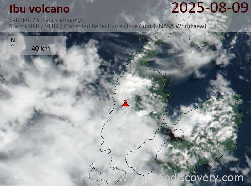 Satellite image of Ibu volcano on 9 Aug 2025