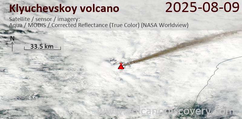Satellite image of Klyuchevskoy volcano on 10 Aug 2025