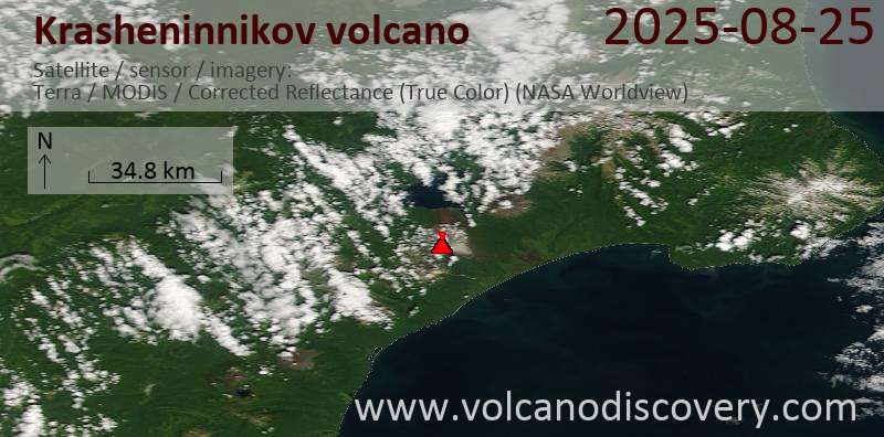 Satellite image of Krasheninnikov volcano on 25 Aug 2025