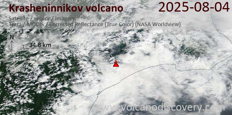 Satellite image of Krasheninnikov volcano on 4 Aug 2025
