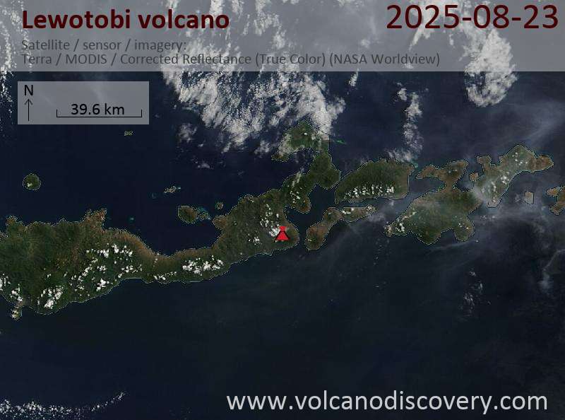 Satellite image of Lewotobi volcano on 23 Aug 2025
