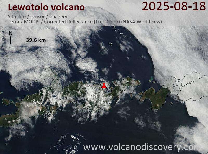 Veröffentlicht am 2025-08-18 von global-affairLewotolo Volcano Volcanic Ash Advisory: VA TO FL070 REPORTED AT 18/0856Z EST VA DTG: 18/1250Z to 7000 ft (2100 m) Satellite image of Lewotolo volcano on 18 Aug 2025