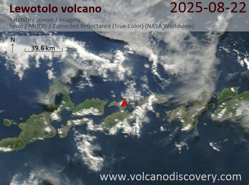 Satellite image of Lewotolo volcano on 22 Aug 2025