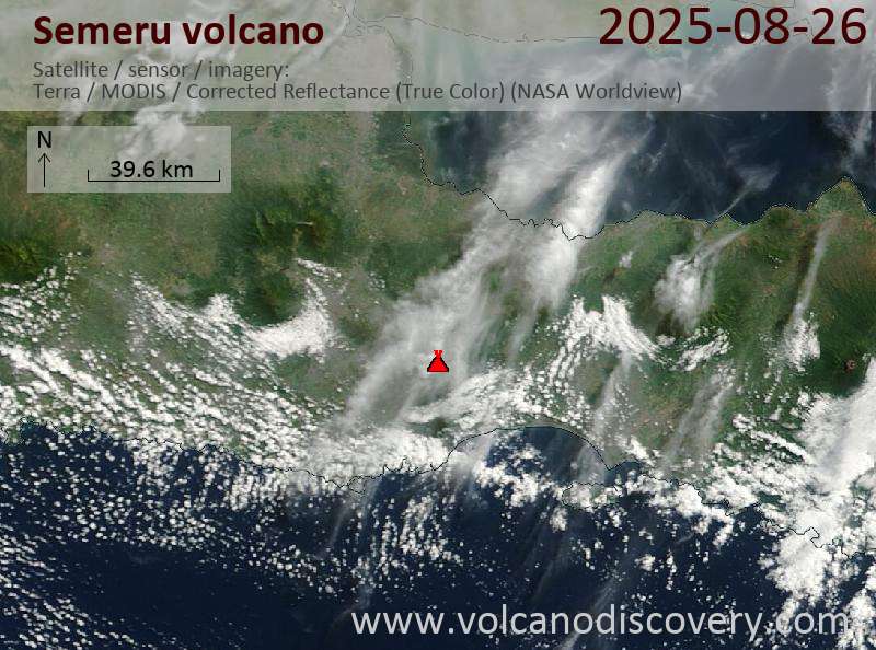 Veröffentlicht am 2025-08-27 von global-affairSemeru Volcano Volcanic Ash Advisory: VA OBS AT 27/0010Z OBS VA DTG: 27/0010Z to 15000 ft (4600 m) Satellite image of Semeru volcano on 27 Aug 2025