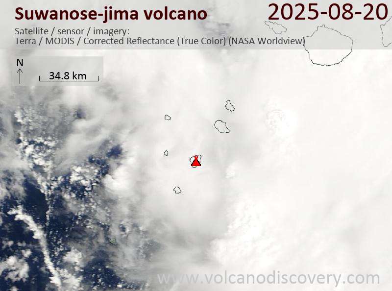 Veröffentlicht am 2025-08-20 von global-affairSuwanose-jima Volcano Volcanic Ash Advisory: ERUPTED AT 20250820/0635Z FL080 EXTD N OBS VA DTG: 20/0630Z Satellite image of Suwanose-jima volcano on 20 Aug 2025