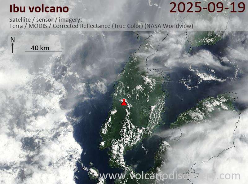 Ibu Volcano Volcanic Ash Advisory: VA TO FL070 LAST REPORTED AT 19/1329Z MOV NW to 7000 ft (2100 m)