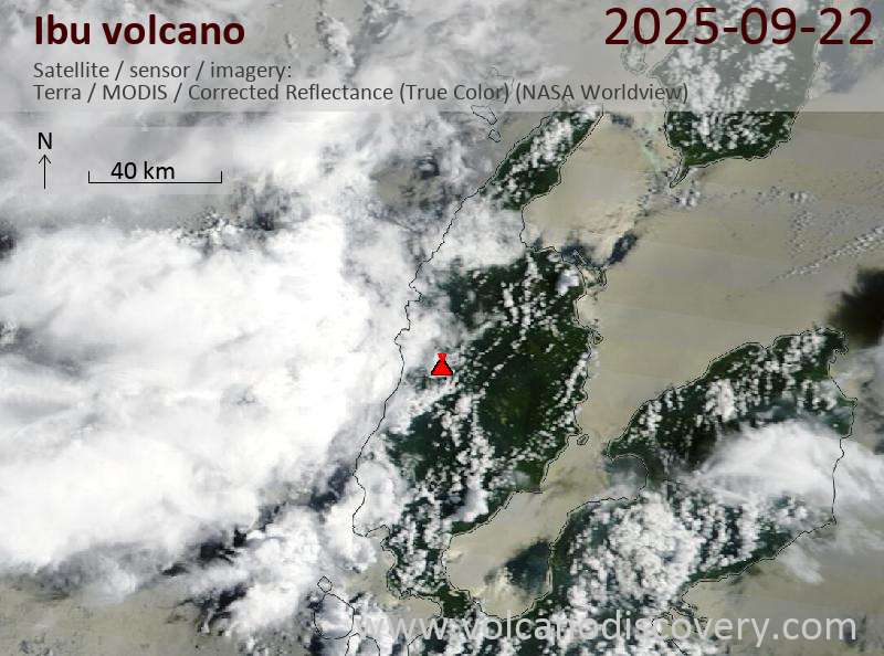 Veröffentlicht am 2025-09-22 von global-affairIbu Volcano Volcanic Ash Advisory: VA TO FL070 MOV N LAST REPORTED AT 22/0316Z to 7000 ft (2100 m) Satellite image of Ibu volcano on 22 Sep 2025