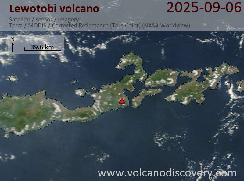Satellite image of Lewotobi volcano on 6 Sep 2025