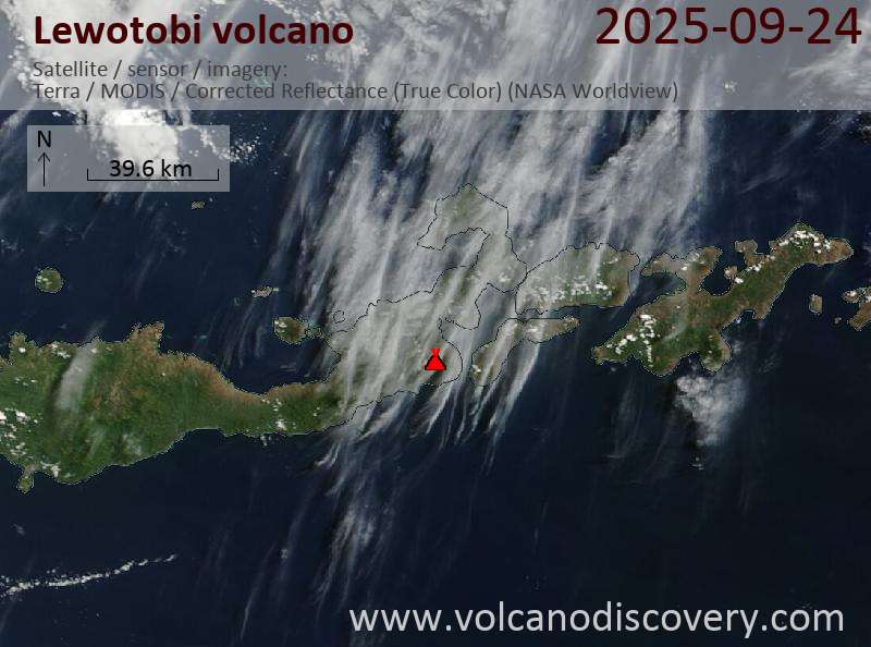 Veröffentlicht am 2025-09-24 von global-affairLewotobi Volcano Volcanic Ash Advisory: VA TO FL100 LAST REP AT 24/0205Z MOV W EST VA DTG: 24/0350Z to 10000 ft (3000 m) Satellite image of Lewotobi volcano on 24 Sep 2025