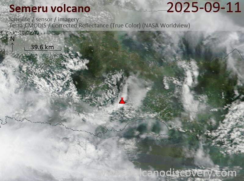 Veröffentlicht am 2025-09-11 von global-affairSemeru Volcano Volcanic Ash Advisory: ERUPTION LAST REPORTED AT 11/0157Z EST VA DTG: 11/1040Z Satellite image of Semeru volcano on 11 Sep 2025